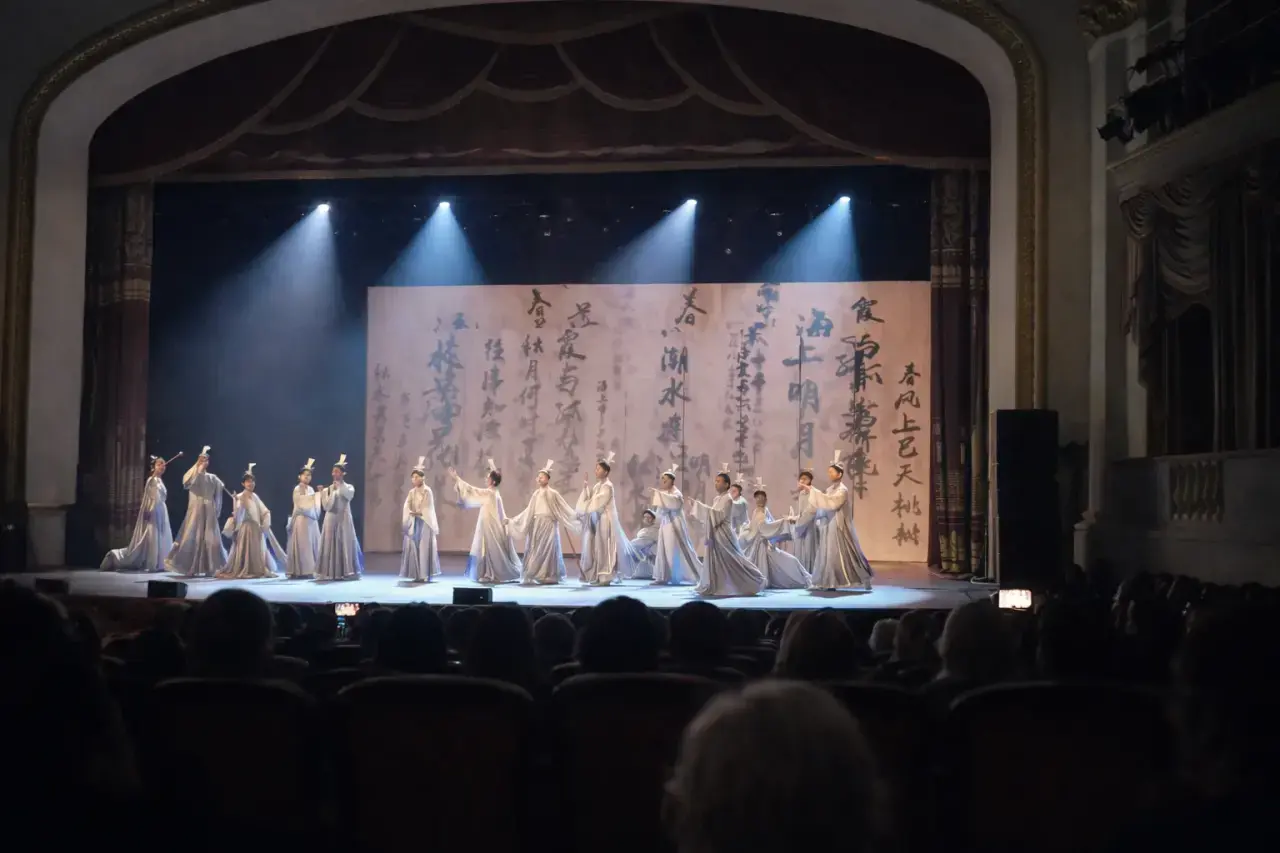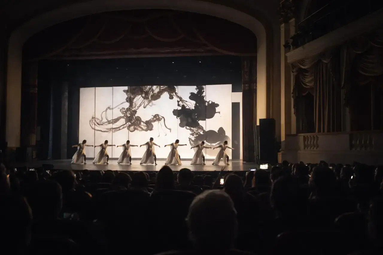 Тела артистов не двигались — они текли. Они не изображали — они растворялись. Чернила, которыми будто бы был написан Цзяннань, не имели цвета в привычном смысле; это были чернила пауз, наклонов головы, замедленных шагов и внезапных остановок, в которых замирало все пространство сцены.
