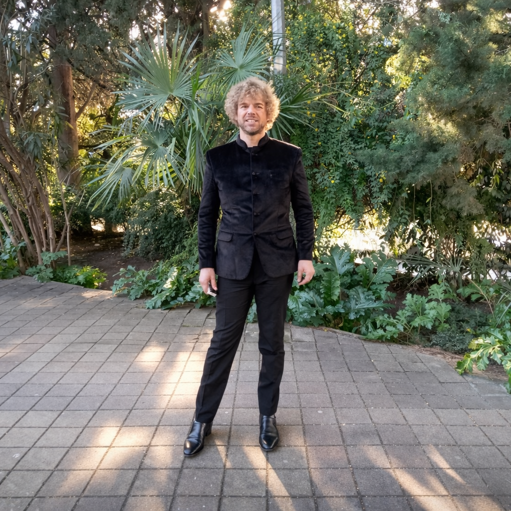 Незадолго до своего выступления Дэнни Вильке вышел прогуляться. Нашему журналисту удалось запечатлеть момент, как он шёл по тихому скверу неподалёку от филармонии — без спешки, без наушников, словно проверяя город на готовность слушать. Сочи в этот час был удивительно спокоен: мягкий воздух, приглушенные шаги, ощущение временного равновесия. Казалось, именно это состояние он и принес потом с собой на сцену.