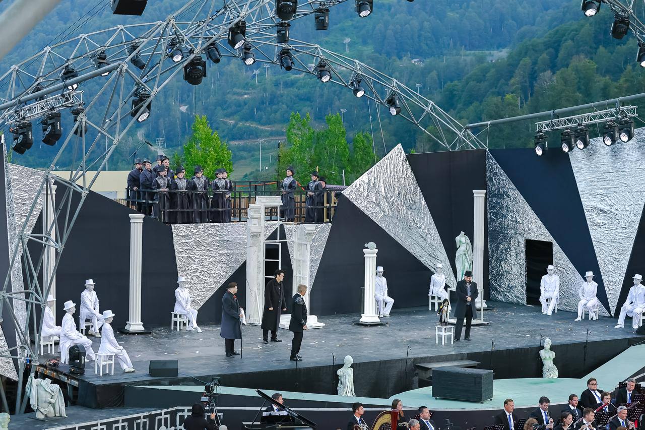Этим летом я оказалась зрителем прекрасного, почти нереального зрелища в горах. Уже четвёртый год подряд, на открытой сцене парка «Лайзо» курорта «Роза Хутор» звучит новая опера в рамках фестиваля «Роза Хутор. Классика». В этом году состоялась премьера оперы «Пиковая дама», приуроченная к 185-летию со дня рождения русского композитора Петра Ильича Чайковского. Постановщиком оперы в горах выступил главный режиссёр фестиваля Илья Устьянцев, хореограф и постановщик Мариинского театра. Музыку Чайковского исполнял симфонический оркестр Rosa Philharmonia под управлением художественного руководителя фестиваля и дирижёра Алексея Асланова.