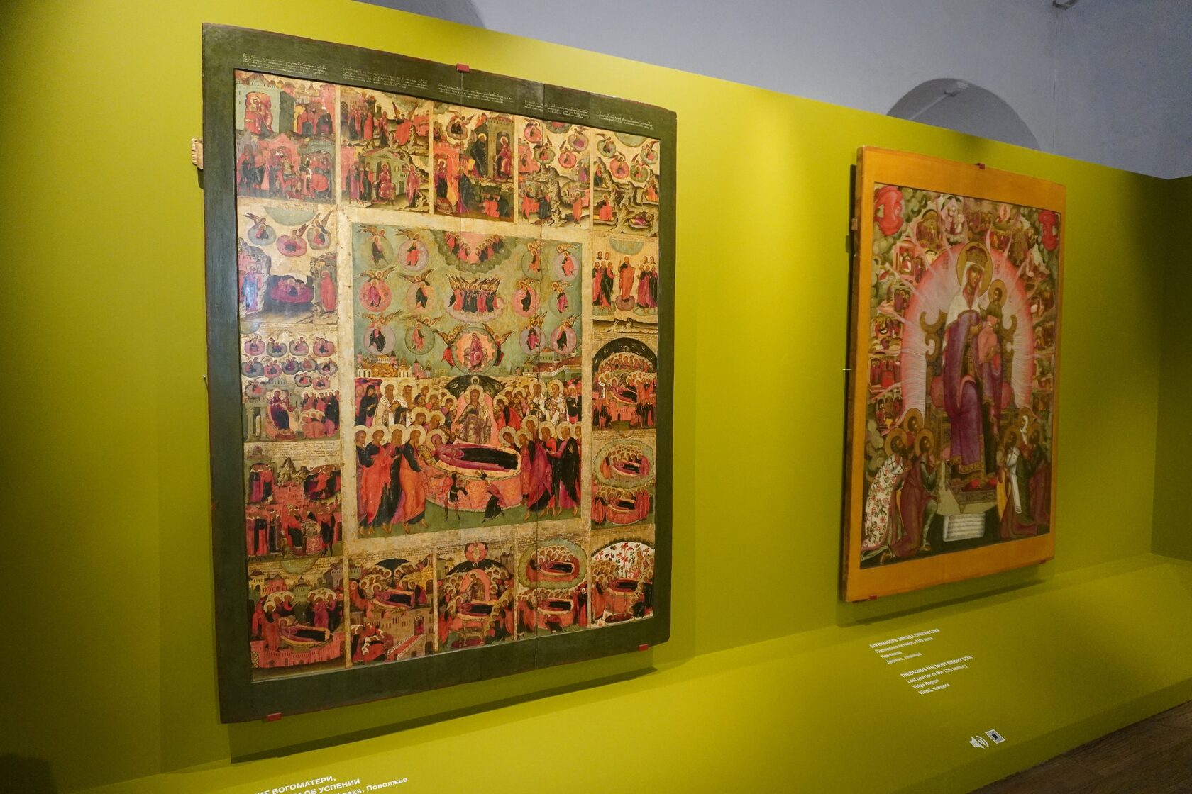 На выставке представлены редкие памятники, посвященные теме святых родственников и семейных отношений, образам детства, христианскому подвигу и благочестию.