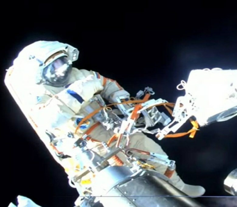 Перенос шлюзовой камеры на Многофункциональный лабораторный модуль (МЛМ, в составе МКС с 2021 года) "Наука" с помощью европейского дистанционного манипулятора ERA, которым изнутри станции управлял третий российский космонавт Андрей Федяев.