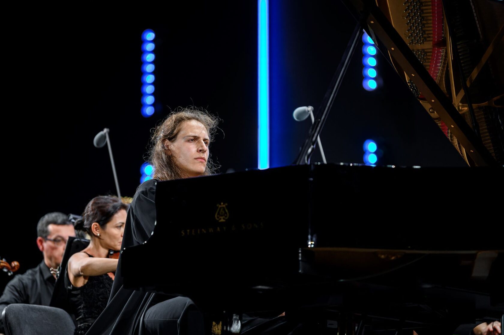 Десять лет назад музыкант дважды принимал участие в программах Образовательного центра «Сириус». В этот раз для выступления на федеральной территории музыкант выбрал Рапсодию на тему Паганини для фортепиано с оркестром Сергея Рахманинова, с которой он выступал на последнем этапе конкурса. Следом на сцену вышла скрипачка Елена Таросян — концертмейстер Российского национального молодёжного симфонического оркестра (РНМСО), лауреат XVII Международного конкурса имени П. И. Чайковского. Она исполнила «Интродукцию и рондо каприччиозо ля минор» француза Камиля Сен-Санса.