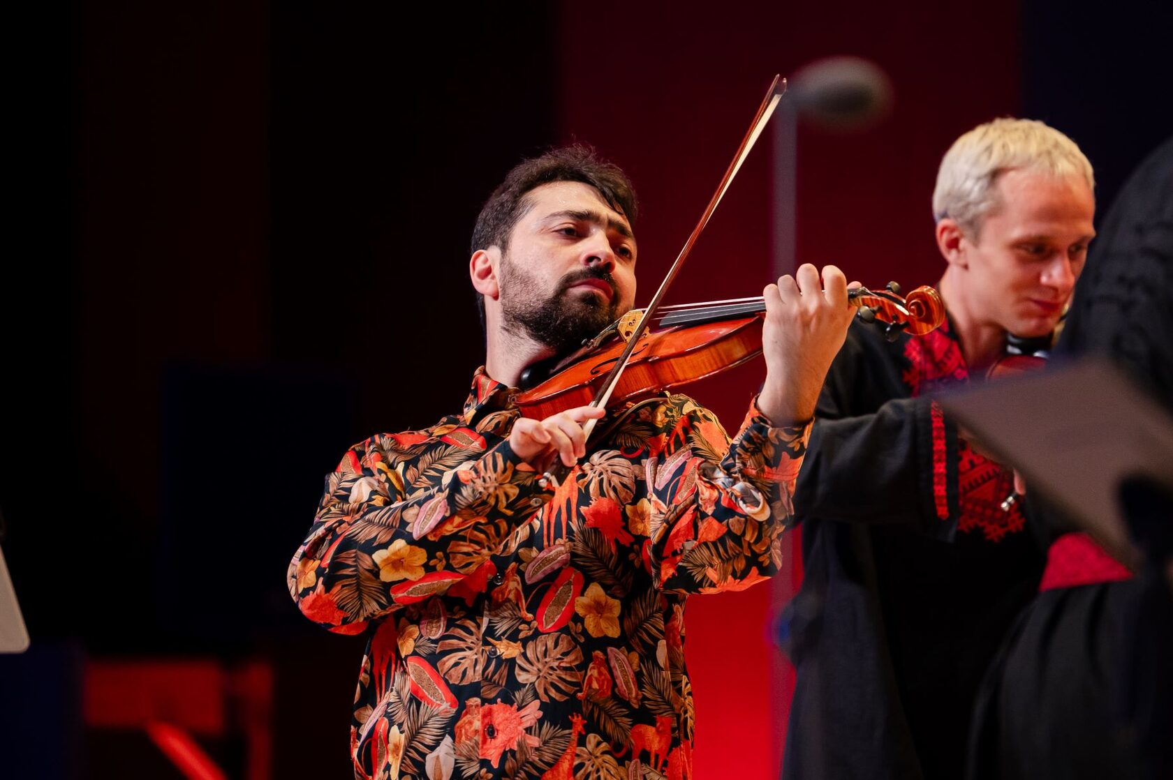 Русские народные песни прозвучали в исполнении заслуженной артистки России, сопрано Яны Иваниловой, которая много лет сотрудничает с маэстро и его коллективом. Партию солирующей скрипки представил лауреат XVII Международного конкурса им. П. И. Чайковского Даниил Коган.