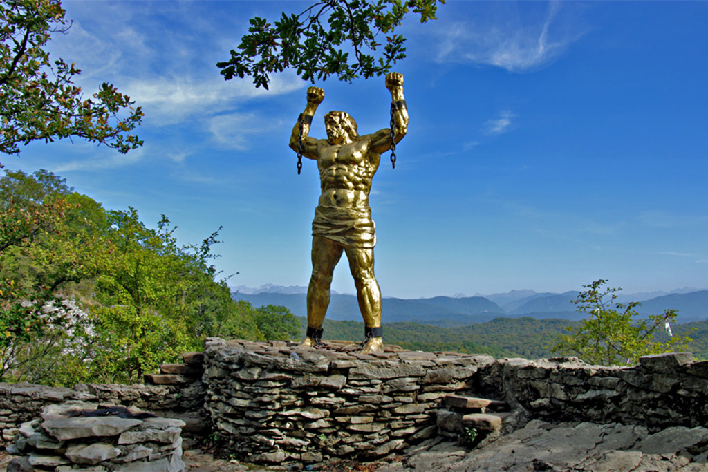 Зевс приказал приковать Прометея на веки вечные к горным скалам Кавказа, где не ступала нога человека.