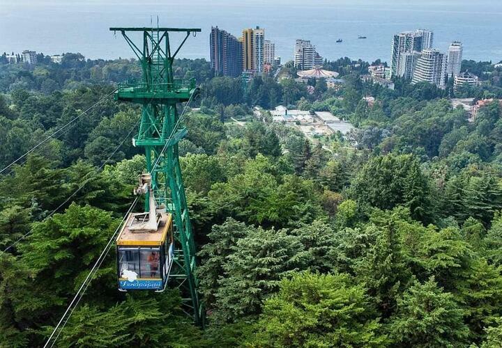 Канатная дорога протяженностью почти километр была пущена в 1977 году на самую высокую точку парка. С высоты птичьего полета открываются южные отроги Кавказского хребта, зеленый склон горы Ахун спускается в Агурское ущелье, рассеченное цепью водопадов.