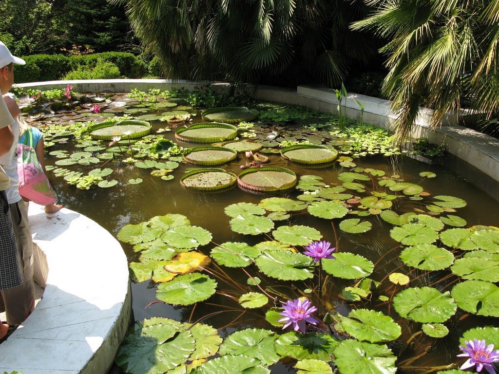 Прогуляться по парку и увидеть воочию самую большую кувшинку викторию-регию, листья которой достигают в диаметре двух метров, и деревья-великаны — эвкалипты и секвойи — высотой более 100 метров.